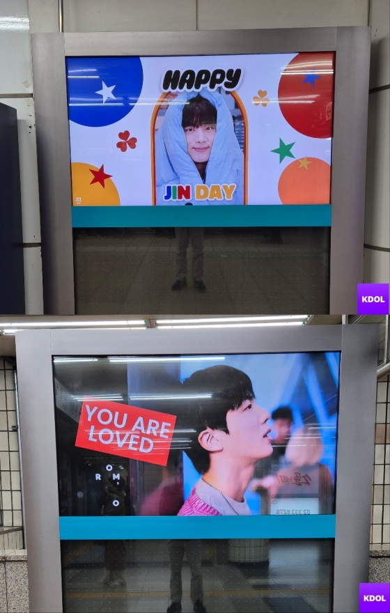 12월 생일랭킹 1위를 차지한 진의 리워드 광고는 내년 1월 1일까지 삼성역과 압구정역에서 만나볼 수 있다.