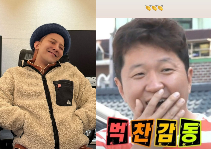 지드래곤은 16일 자신의 부계정을 통해 박수 이모티콘과 함께 '벅찬 감동'이라는 문구가 새겨진 캡쳐 사진을 올렸다.