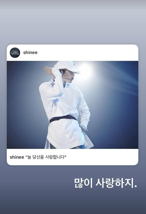 샤이니 측은 18일 종현의 7주기를 맞이해 공식 SNS 채널을 통해 "늘 당신을 기억합니다"라며 애도했다. 민호는 이날 해당 게시글을 캡처해 "많이 사랑하지"라고 여전한 애정을 보였다.