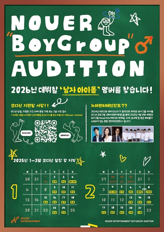 24일 누아엔터테인먼트에 따르면 2026년 데뷔를 목표로 한 '글로벌 보이그룹 오디션'을 개최한다.
