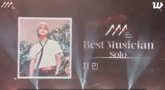 지민은 2024년 12월 27일 태국 방콕 임팩트 챌린저 홀 1-2(IMPACT Challenger Hall 1-2)에서 열린 '제9회 아시아 아티스트 어워즈'(The 9th Asia Artist Awards, AAA 2024)에서 '베스트 뮤지션' 솔로(Best Musician(Solo)) 부문을 수상했다.