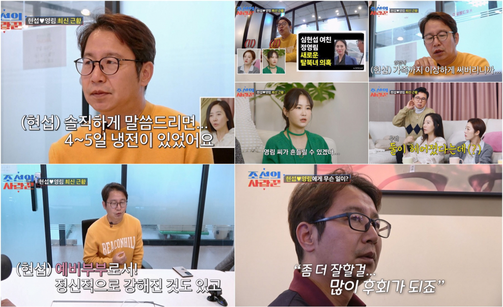 6일 방송되는 TV조선 예능 프로그램 '조선의 사랑꾼'에서는 심현섭이 "솔직하게 4~5일 냉전이 있었다"며 여자친구와의 위기를 밝혔다.