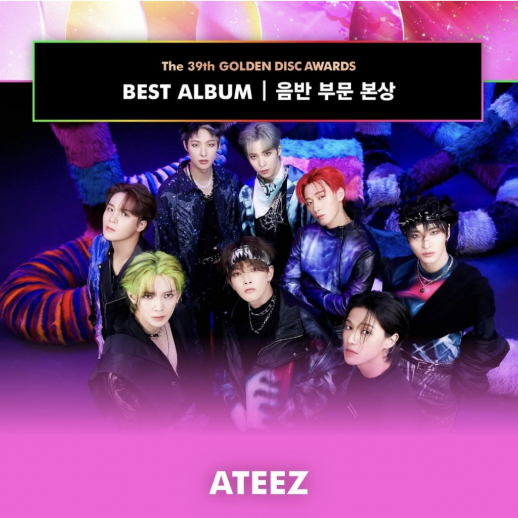 7일 에이티즈는 방송된 '제39회 골든디스크 어워즈'에서 음반 부문 본상을 수상했다. '골든디스크 어워즈'는 2023년 11월 초부터 2024년 11월 초까지 발매된 음반의 2024년 11월 말까지 판매량과 함께 전문가 심사단의 평가와 써클차트 음원 이용량 및 음반 판매량 집계를 합산한 총점을 기준으로 수상자를 선정하고 있다. 이 가운데 에이티즈는 새해부터 수상의 영광을 안게 됐다.