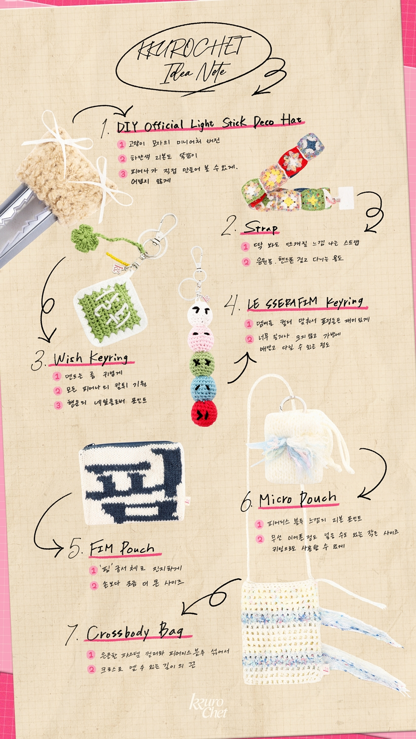 꾸로셰는 팬들이 직접 만들어 볼 수 있는 DIY 키트, 스트랩, 키링, 파우치, 크로스바디 백 등의 품목으로 구성되었고 14일 오전 11시 정식 론칭된다.