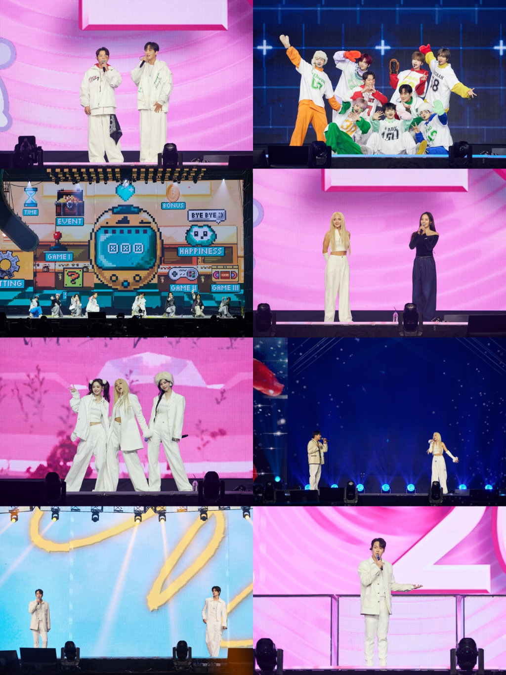 게다가 H.O.T. 토니안, S.E.S. 바다, 플라이 투 더 스카이 환희 등 SMTOWN Family의 스테이지는 SM 음악의 가치를 제대로 증명한 순간이었다. NCT DREAM의 'Candy' 무대에 깜짝 등장한 H.O.T. 토니안과 강타는 NCT 샤오쥔·헨드리·시온·유우시, 라이즈 원빈·앤톤과 '행복'을 부르며 세대 대통합을 이뤄내 뜨거운 화제를 모았고, S.E.S. 바다는 에스파 카리나, 윈터와 'Dreams Come True', 슈퍼주니어 려욱과 'Cosmic'을 열창한 것은 물론, 직접 써온 손편지를 낭독해 공연장을 감동으로 가득 채웠으며, 플라이 투 더 스카이 환희는 라이즈 소희와 'Sea Of Love'를 감미로운 호흡으로 맞춰 잊을 수 없는 무대를 선사했다.