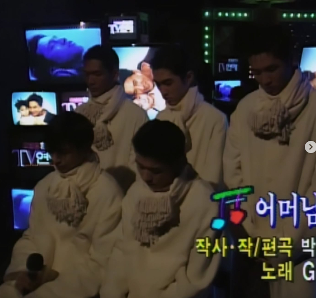 사진에는 god가 데뷔곡 '어머님께'로 첫 음악방송 무대에 나서는 영상이 캡쳐돼 담겼다.
