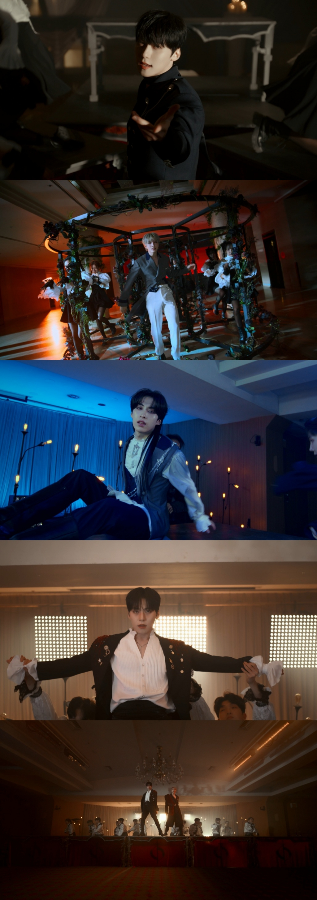 원어스는 뱀파이어 저택에서 하나가 된 듯한 칼군무를 자랑하는가 하면, 다양한 무대 소품과 구성으로 한시도 눈을 뗄 수 없는 퍼포먼스를 완성했다.