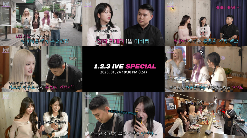 아이브의 자체 콘텐츠 '1.2.3 IVE' 스페셜 에피소드 본편은 24일 오후 7시 30분 아이브 공식 유튜브 채널을 통해 공개된다. 아이브는 18일 MBC '쇼! 음악중심'에서 선공개곡 '레블 하트(REBEL HEART)' 무대를 선보일 예정이다.