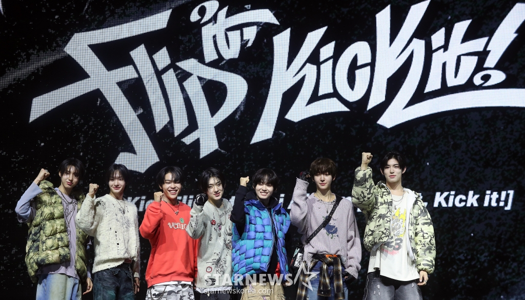 킥플립(계훈, 아마루, 동화, 주왕, 민제, 케이주, 동현)은 20일 오후 서울 광진구 광장동 예스24라이브홀에서 첫 번째 미니앨범 '플립 잇, 킥 잇!(Flip it, Kick it)' 발매 기념 쇼케이스를 개최했다.