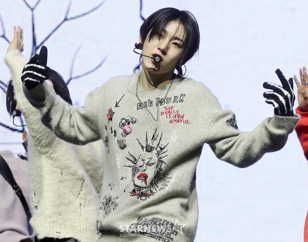 JYP 신인 그룹 킥플립(KickFlip) 계훈이 20일 오후 서울 광진구 예스24 라이브홀에서 진행된 첫 미니 앨범 'Flip it, Kick it!'(플립 잇, 킥 잇!) 발매 기념 쇼케이스에 참석해 멋진 무대를 선보이고 있다.