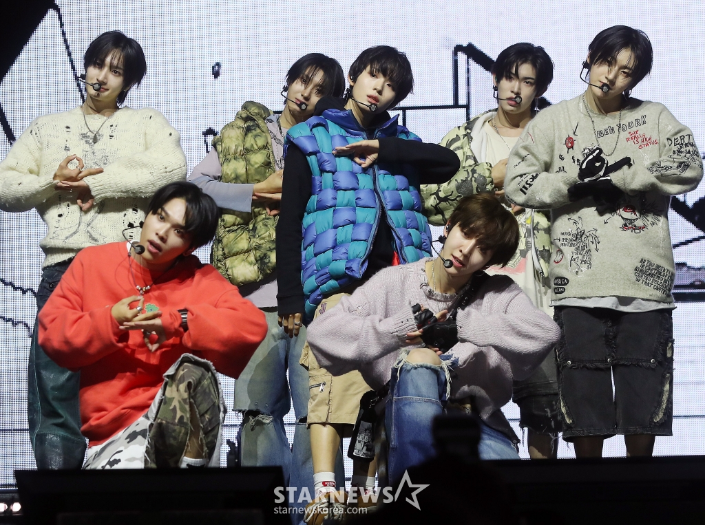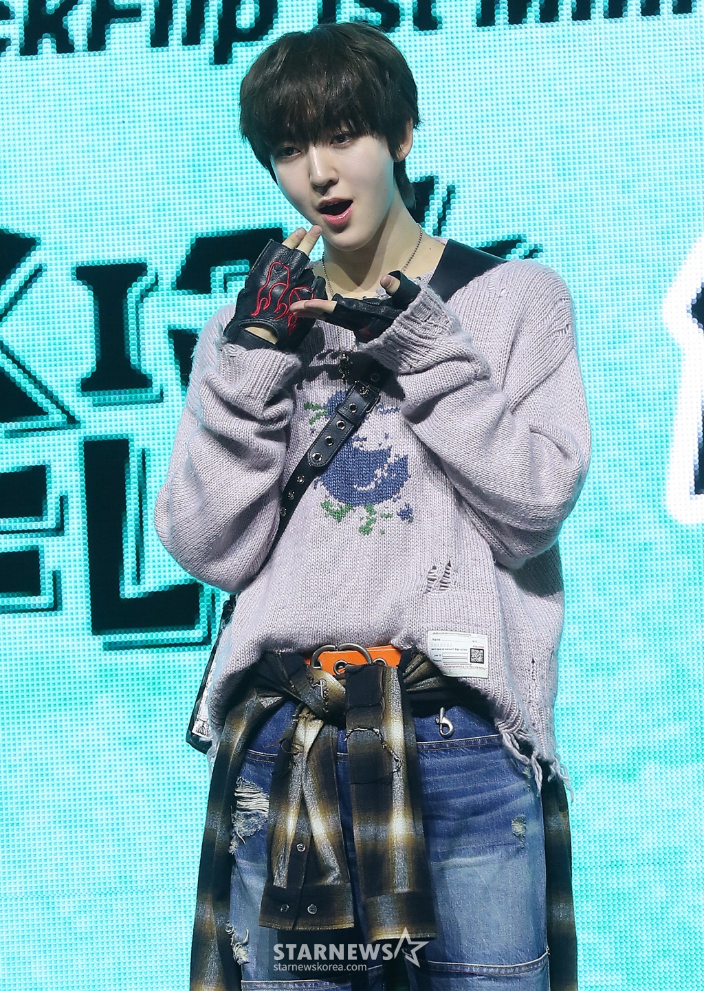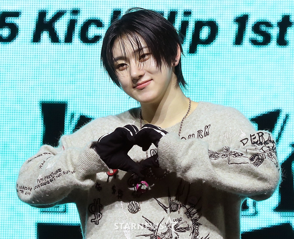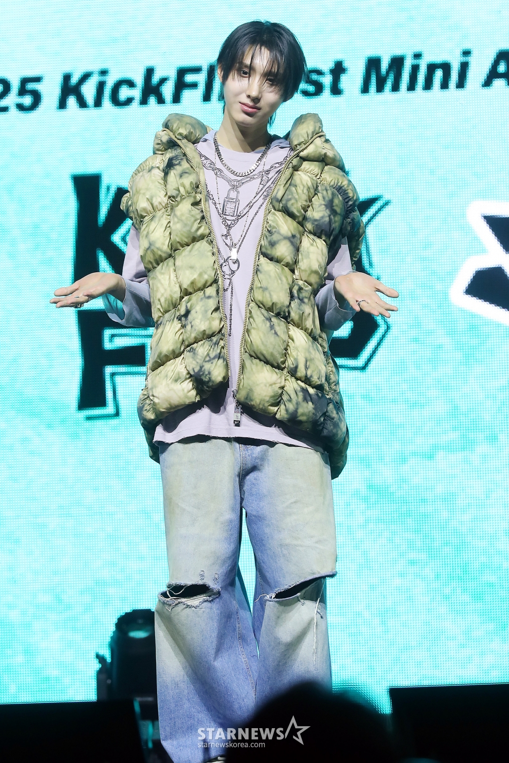 킥플립(계훈, 아마루, 동화, 주왕, 민제, 케이주, 동현)은 20일 오후 서울 광진구 광장동 예스24라이브홀에서 첫 번째 미니앨범 '플립 잇, 킥 잇!(Flip it, Kick it)' 발매 기념 쇼케이스를 개최했다.