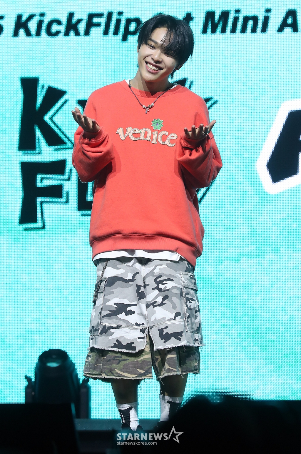 케이주는 "무대를 다같이 할 수 있어서 정말 행복하다. 믿기지 않아서 벅차오르는 기분이다. 킥플립 멤버로, 우리 곡으로 무대를 할 수 있어서 너무 영광이다"라며 멤버들을 향해 남다른 애정을 드러냈다.