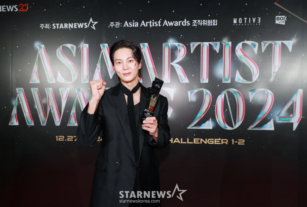 배우 주원이 27일 오후 태국 방콕 임팩트 챌린저 홀 1-2(IMPACT Challenger Hall 1-2)에서 진행된 '제9회 아시아 아티스트 어워즈'(The 9th Asia Artist Awards, 이하 'AAA 2024')에서 AAA 베스트 아티스트상을 수상한 뒤 포즈를 취하고 있다. /2024.12.27 /사진=이동훈 기자 photoguy@