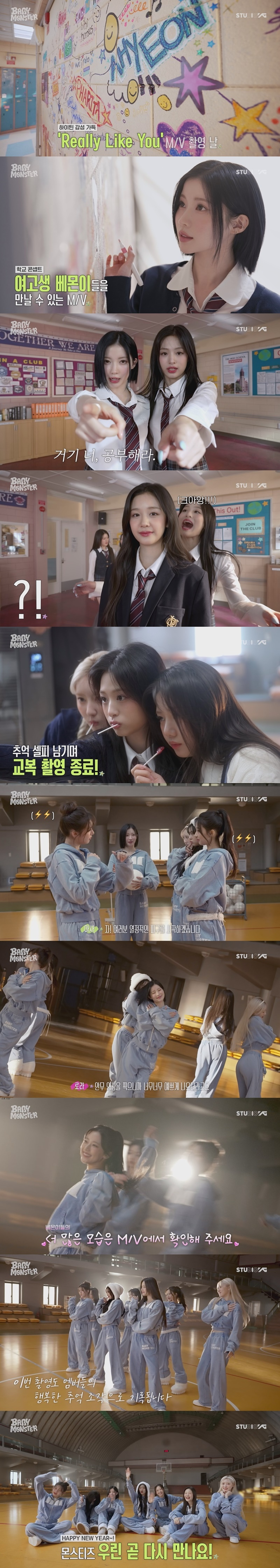YG 베이비몬스터가 하이틴 감성의 색다른 변신으로 음악팬들의 뜨거운 사랑을 받고 있는 'Really Like You' 뮤직비디오 비하인드를 지난 24일 공개했다.