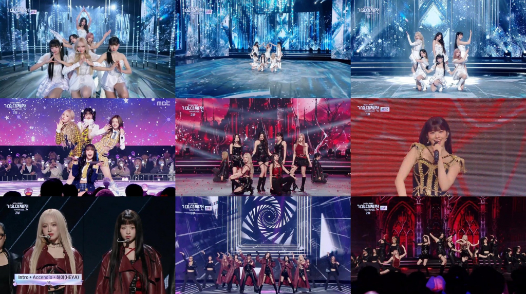 아이브는 '아센디오(Accendio)'와 '해야 (HEYA)' 무대로 열기를 이어갔다. 버건디 컬러의 가죽 코트를 통해 요원이 된 듯한 느낌을 자아낸 아이브는 페어 안무로 이목을 집중시킨 뒤 강렬하면서도 매혹적인 '아센디오' 무대를 선보였다. 특히 후반부에는 화려한 레이저 효과에 맞춰 파워풀한 댄스 브레이크를 펼치며 짜릿한 전율을 선사했다.