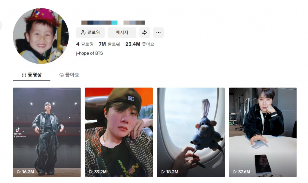 방탄소년단 제이홉이 숏폼 동영상 플랫폼 틱톡에 개인 계정을 오픈하며 존재감을 뽐내고 있다.