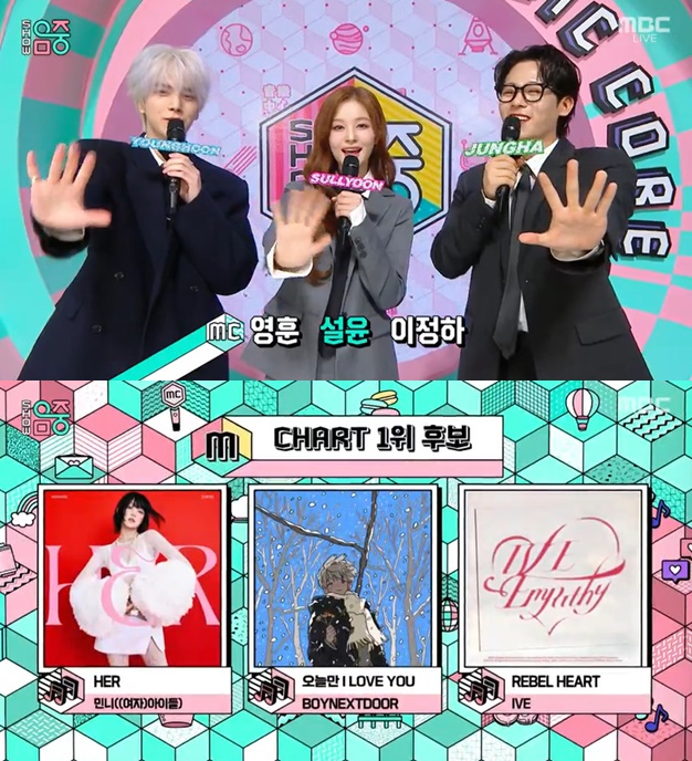 민니는 'HER', 보이넥스트도어는 '오늘만 I LOVE YOU', 아이브는 'REBEL HEART'로 '음중' 1위 후보에 이름을 올렸다.