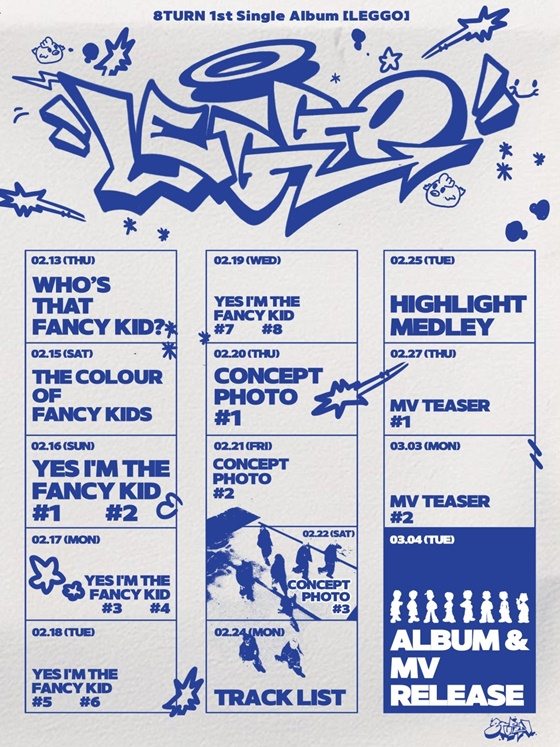 공개된 스케줄러에 따르면 오는 3월 4일 발매되는 에잇턴의 새 싱글은 '레고'(LEGGO)다. 에잇턴은 13일 '후즈 댓 팬시 키드'(WHO'S THAT FANCY KID), 16일부터 19일까지 '예스 아이엠 팬시 키드'(YES I'M THE FANCY KID)란 타이틀의 콘텐츠를 차례로 공개한다.