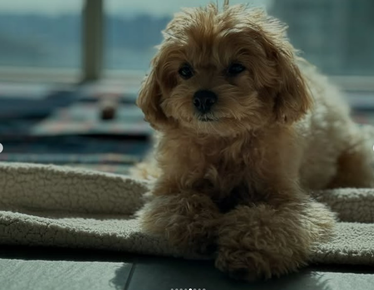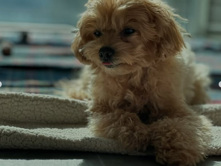 사진 속에는 윤도현의 반려견이 거실에 엎드려 느긋하게 햇볕을 쬐고 있었다.