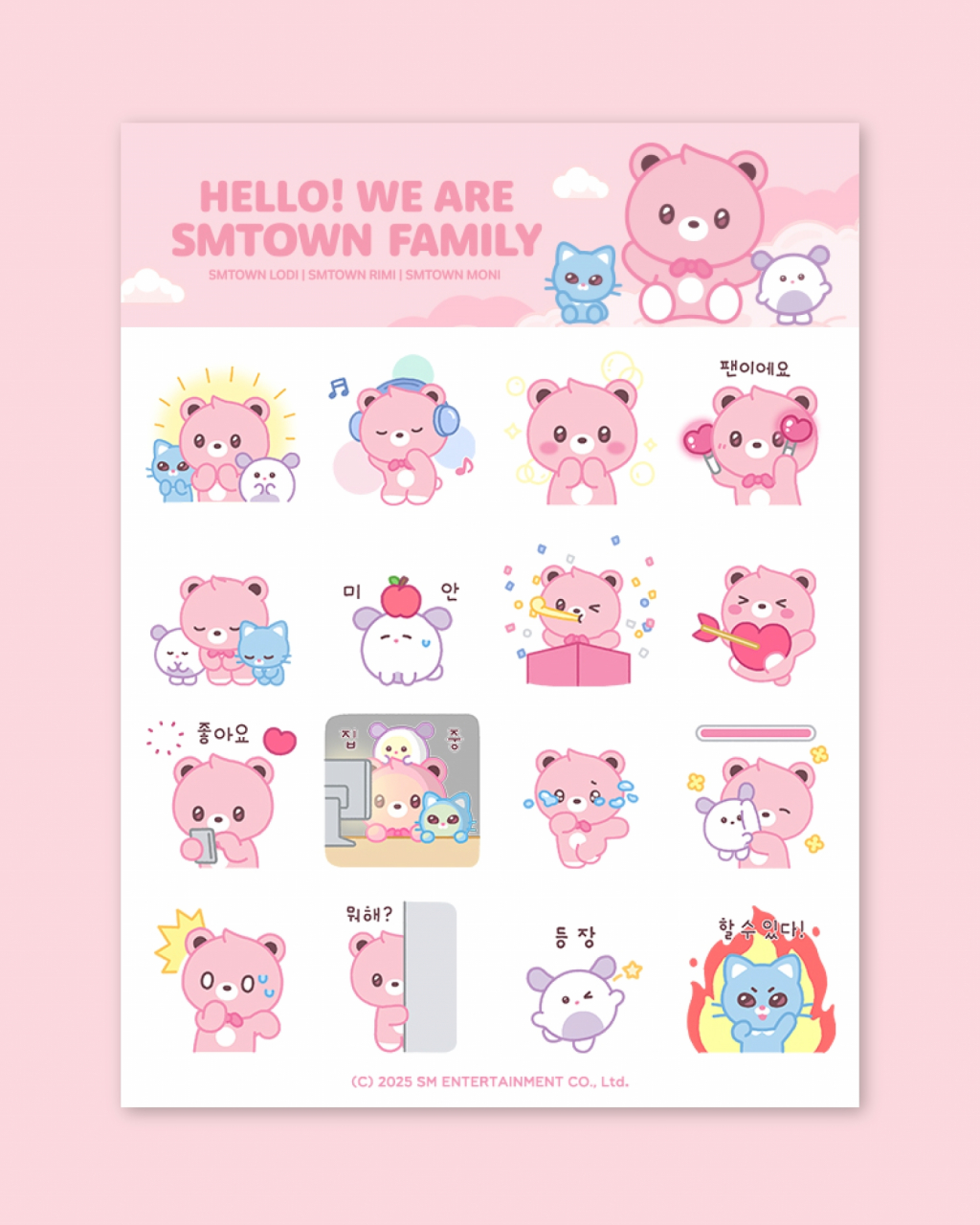 SM 신규 공식 캐릭터 라인업 'SMTOWN FAMILY'는 SMTOWN 마을에 살고 있는 세 친구 'SMTOWN LODI'(슴타운 로디), 'SMTOWN RIMI'(슴타운 리미), 'SMTOWN MONI'(슴타운 모니)로 구성되어 있다.