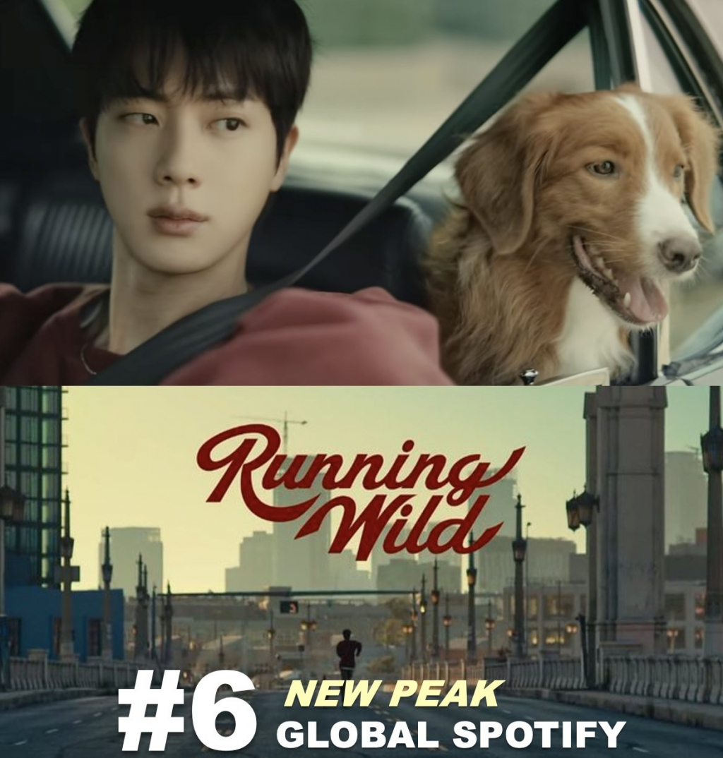 진의 'Running Wild'는 글로벌 스포티파이 최고 순위 6위를 기록한 바 있다.