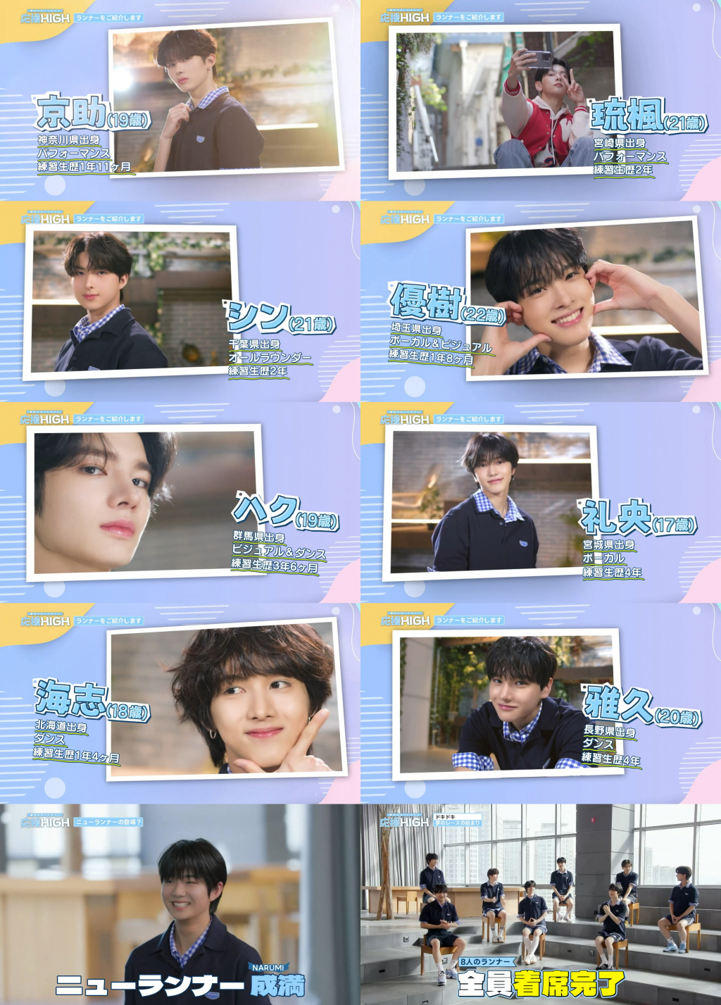 이날 방송에서는 유주(YUJU), 신(SHIN), 루카(RUKA), 가쿠(GAKU), 하쿠(HAKU), 쿄스케(KYOSUKE), 카이지(KAIJI), 레오(REO), 나루미(NARUMI) 9인이 소개됐다. 새로운 도전자 2인의 추가 등장도 예고돼 총 11인이 데뷔를 향한 마라톤에 나선다.