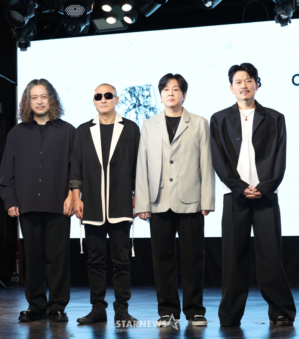(서울=뉴스1) 권현진 기자 = 록밴드 YB 허준(왼쪽부터)과 윤도현, 김진원, 박태희가 17일 서울 마포구 롤링홀에서 가진 새 EP 앨범 ‘Odyssey’ 쇼케이스에서 포즈를 취하고 있다. 2025.2.17/뉴스1 Copyright (C) 뉴스1. All rights reserved. 무단 전재 및 재배포, AI학습 이용 금지. /사진=(서울=뉴스1) 권현진 기자