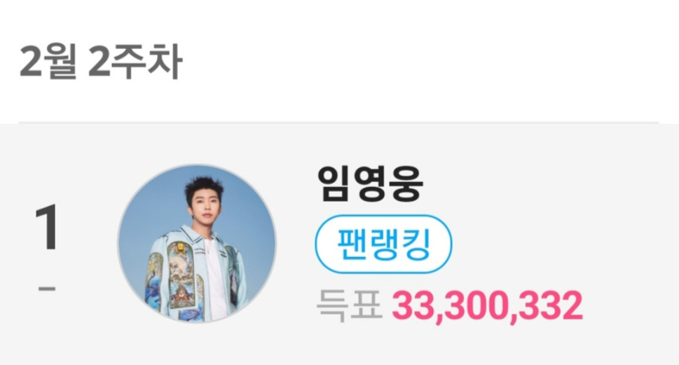 연예K-POP임영웅, 팬앤스타 솔로랭킹 111주 연속 1위발행 : 2025.02.18 ・ 08:50문완식 기자가수 임영웅이 팬앤스타 솔로랭킹 111주 연속 1위에 오르며 인기를 빛냈다.임영웅은 2025년 2월 2주차 팬앤스타 솔로 랭킹에서 3330만 332표를 획득해 1위를 기록했다.임영웅은 팬앤스타 솔로랭킹 111주 연속 1위 대기록을 달성했다.임영웅의 든든한 지원군 영웅시대는 변함 없는 사랑과 응원으로 111주 연속 1위를 만들어내며 빛나는 기록 행진을 이끌었다.<저작권자 © 스타뉴스, 무단전재 및 재배포 금지>임영웅영웅시대팬앤스타솔로랭킹1위AAA추천 기사문완식 기자기자홈좋아요 연예-K-POP의 인기 급상승 뉴스연예-K-POP의 최신 뉴스
