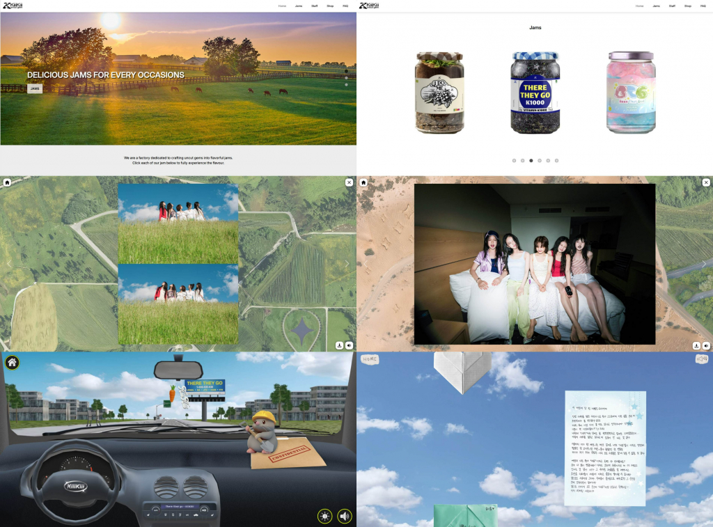 먼저 농장의 구글 맵처럼 꾸며진 'I DO ME' 섹션에는 총 6개의 핀이 놓여 있다. 각 핀을 클릭하면 KiiiKiii(키키) 멤버들의 다채로운 매력을 담은 콘셉트 포토가 펼쳐진다. 자연 속에서 자유롭고 순수한 순간을 담은 모습, 서정적인 풍경과 거칠고 야생적인 감성이 공존하는 장면, 그리고 빈티지한 무드와 감각적인 스트리트 스타일이 조화를 이루는 콘셉트까지. 멤버들은 각기 다른 6가지 콘셉트를 통해 다채로운 개성과 독보적 분위기를 선보인다.