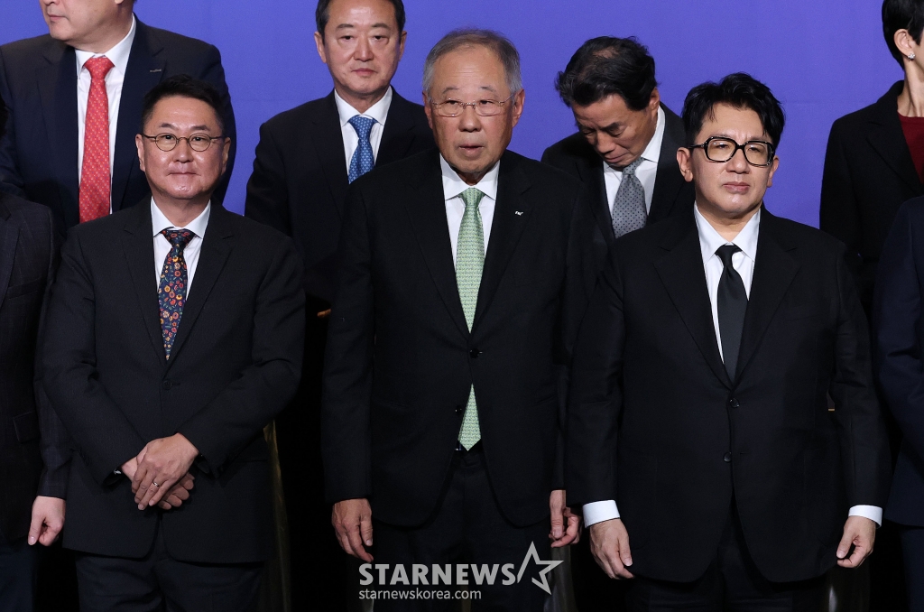 하이브는 이날 한경협 신규 가입이 확정돼 신규 회원사 대표들과 기념 촬영에 나섰다.