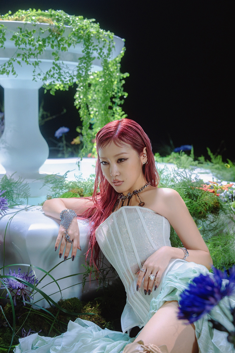 공개된 커버 이미지에는 강렬한 블랙 드레스에 딥로즈 컬러 헤어를 한 혜윤이 카메라를 고혹적으로 응시하며, 카리스마 넘치는 비주얼을 자랑하는 모습이 담겨 있다.
