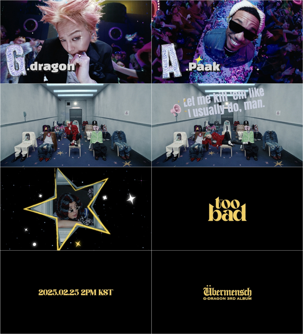 한편, 타이틀곡 'TOO BAD'의 티저 공개로 정규 앨범 'Ubermensch'에 대한 기대가 고조되는 가운데, G-DRAGON은 오는 3월 29일, 30일 양일 오후 6시 30분 고양종합운동장에서 'G-DRAGON 2025 WORLD TOUR [Ubermensch] IN KOREA presented by Coupang Play(쿠팡플레이와 함께하는 G-DRAGON 월드투어 '위버맨쉬' 인 코리아)' 개최를 앞두고 있다.