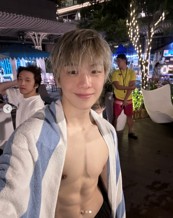 사진 속 강다니엘은 필리핀 마닐라에서 수영복만 입은 채 선명한 복근과 가슴 근육을 뽐내고 있는 모습. 그는 아이처럼 순둥순둥한 비주얼과는 상반되는 섹시한 피지컬을 과시하며 글로벌 팬심을 뒤흔들었다.