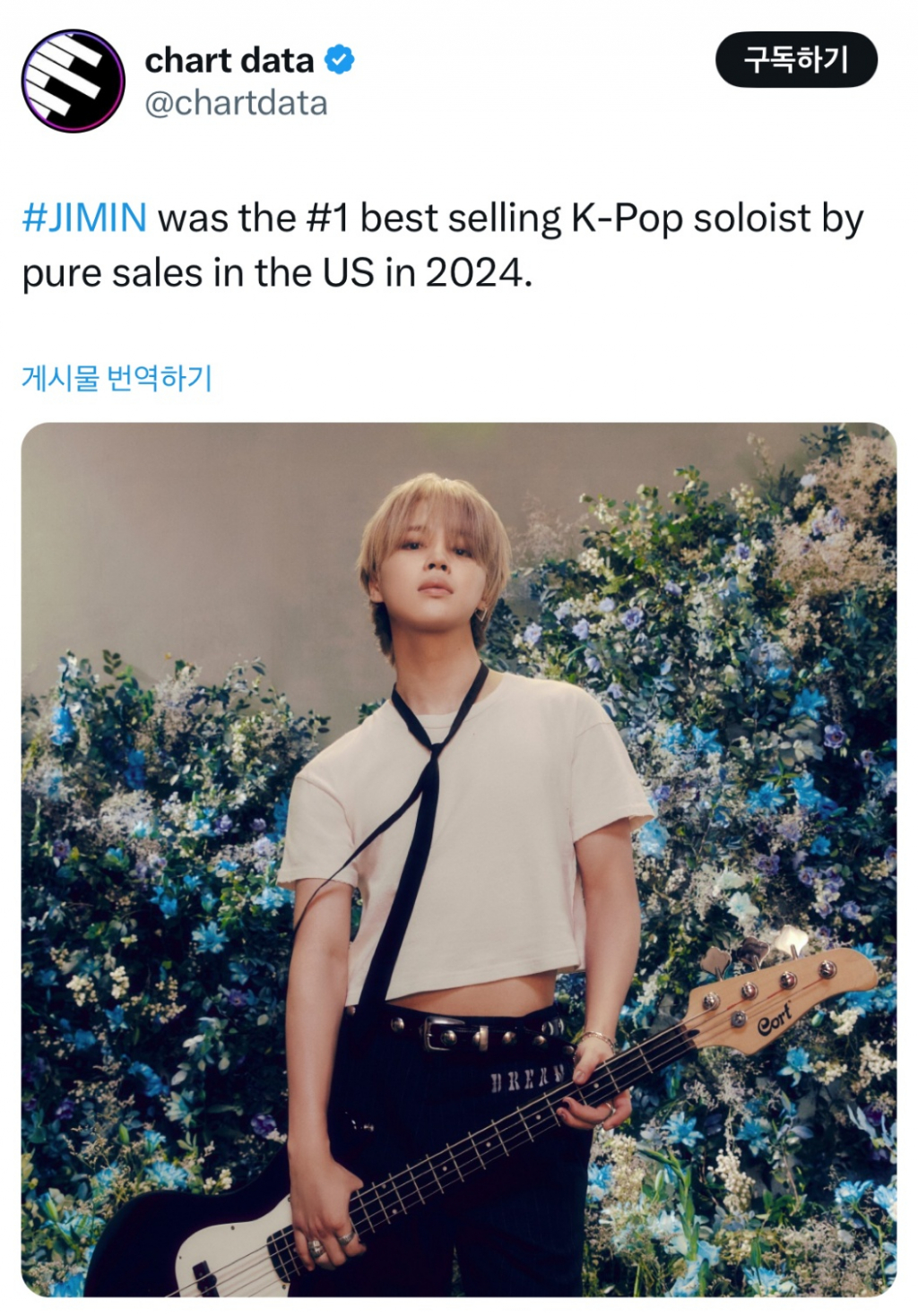 지민은 미국 내 총 앨범 판매량 기준 2024년 가장 많이 팔린 K팝 솔로 아티스트에 등극, 퓨어 세일즈에서도 1위를 차지하며 미국 내 막강한 영향력을 실감케 했다.
