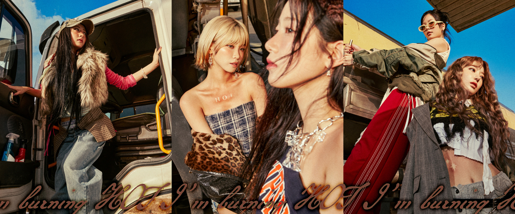 단체 사진 속 멤버들은 작열하는 태양 아래 그 어느 때보다 강렬한 비주얼을 자랑한다. 이들은 햇빛에 붉게 탄 듯한 메이크업을 완벽하게 소화해 색다른 느낌을 선사한다. 또한 이날 선보인 두 장의 단체 사진에는 지난 17일 공개된 로고모션에 삽입된 "I'm burning HOT"이라는 문구가 재등장해 눈길을 끌었다.