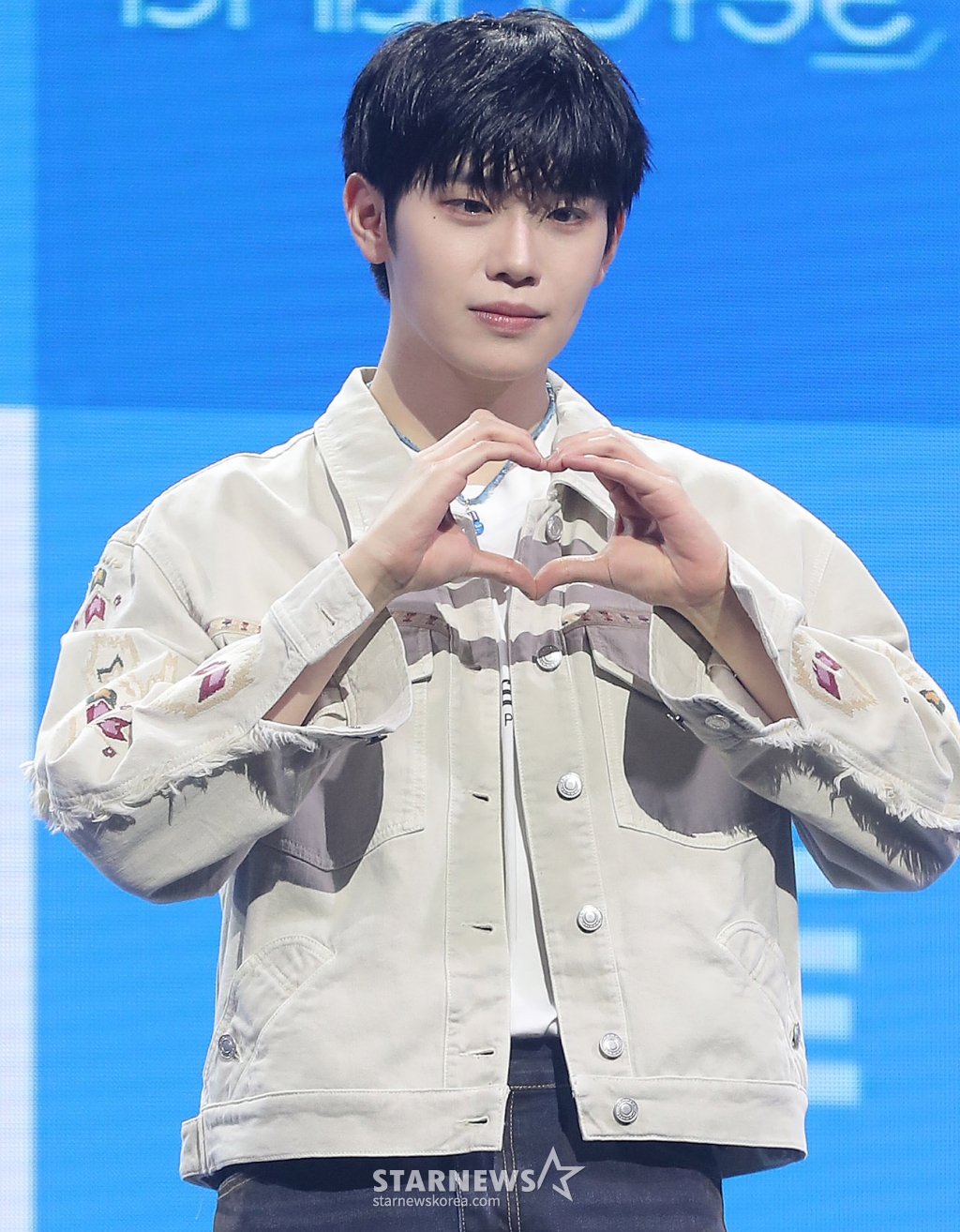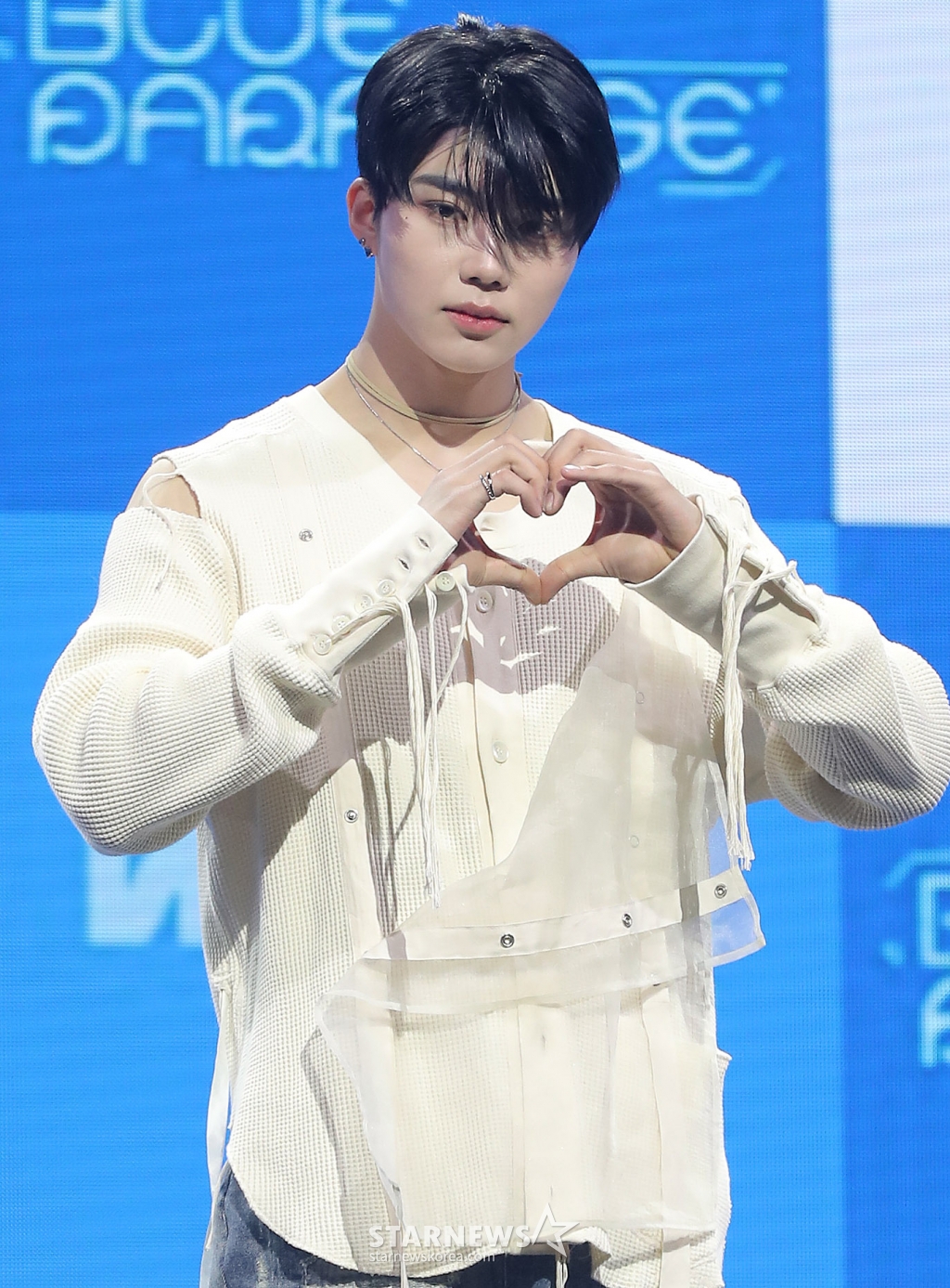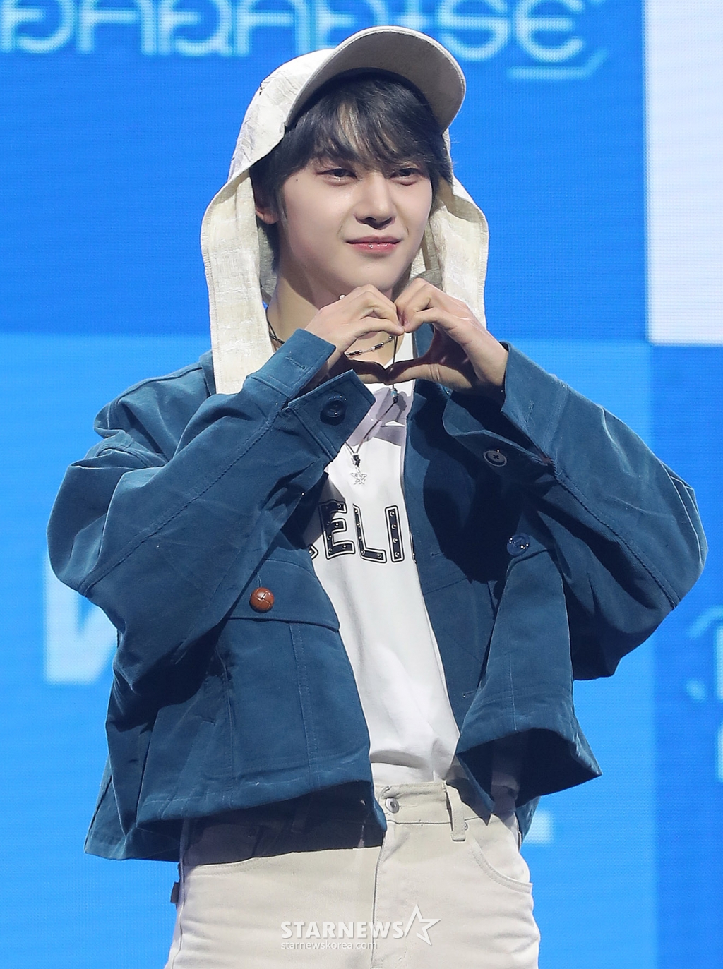 제로베이스원(성한빈, 김지웅, 장하오, 석매튜, 김태래, 리키, 김규빈, 박건욱, 한유진)은 24일 오후 서울 용산구 블루스퀘어 마스터카드홀에서 다섯 번째 미니 앨범 '블루 파라다이스(BLUE PARADISE)' 발매 기념 쇼케이스를 개최했다.
