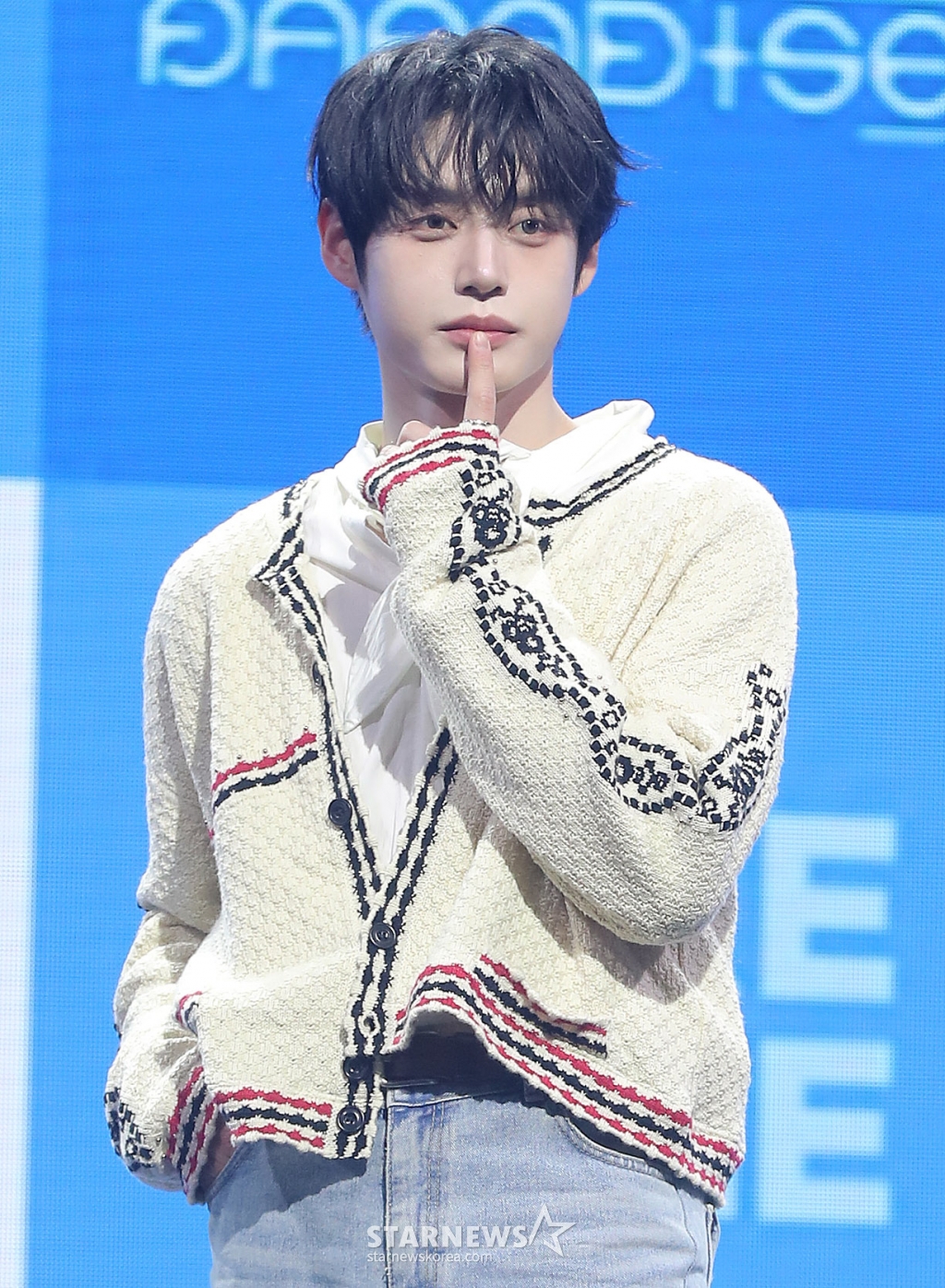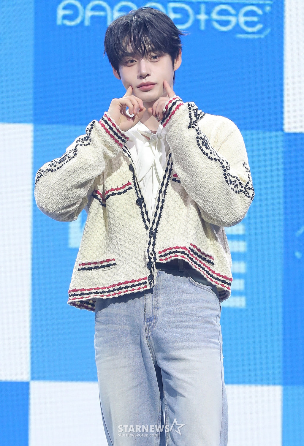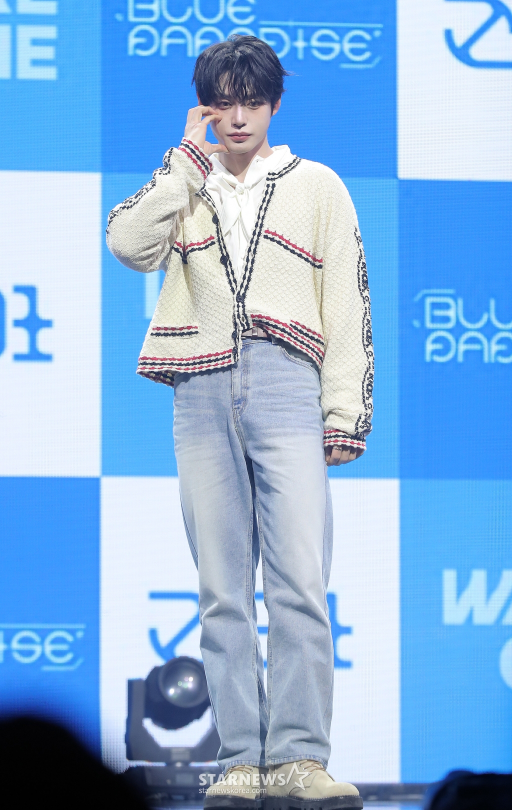 그룹 제로베이스원(ZEROBASEONE) 김지웅이 24일 오후 서울 용산구 블루스퀘어에서 진행된 미니 4집 '시네마 파라다이스(CINEMA PARADISE)' 발매 기념 쇼케이스에 참석해 포즈를 취하고 있다.