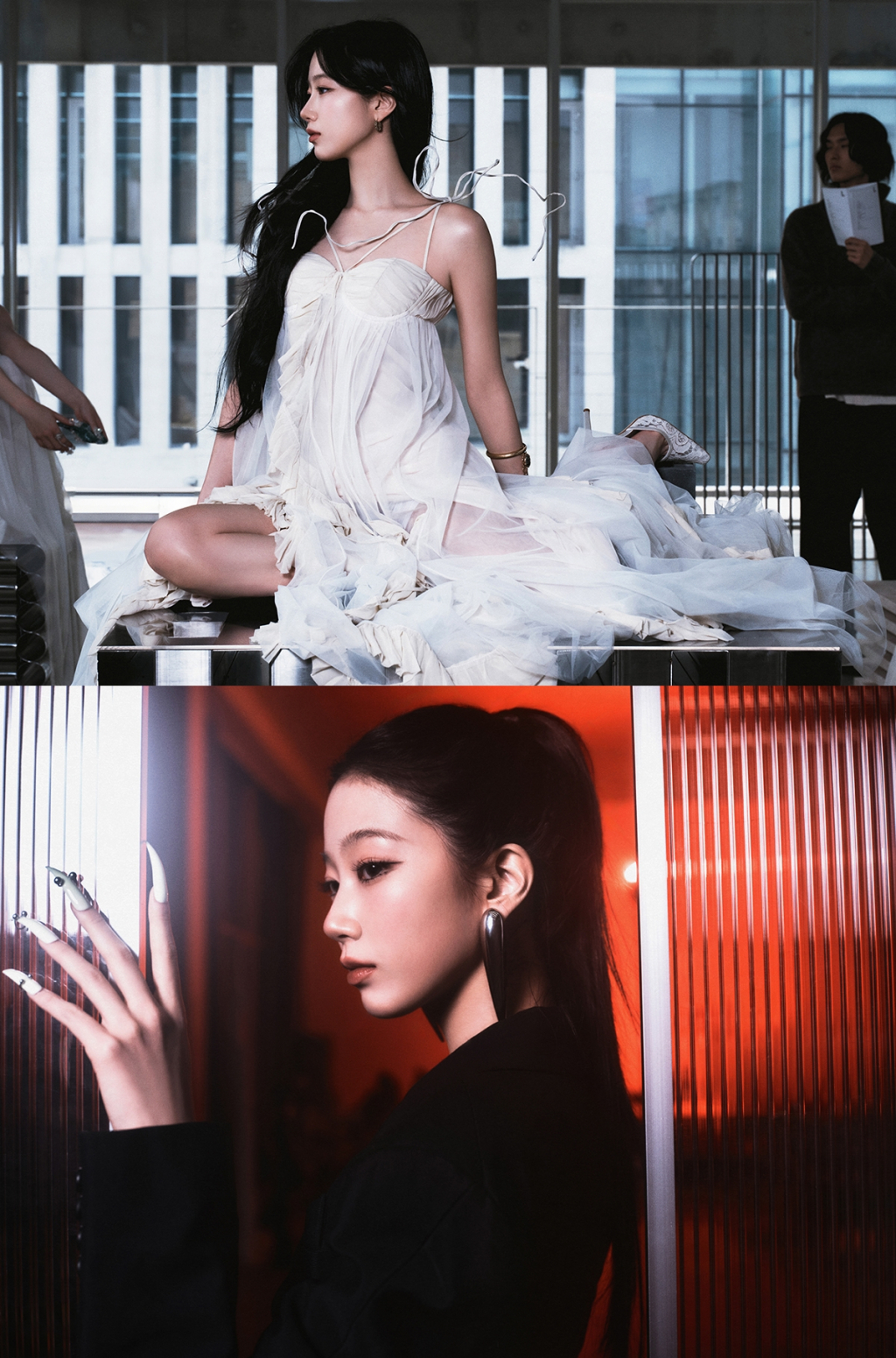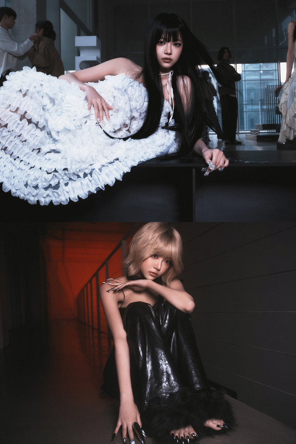 사쿠라는 긴 머리카락을 날리며 청순함을 뽐내다가도 짙은 스모키 메이크업으로 고양이 같은 매력을 발산한다. 카즈하는 우아한 백조 같은 자태와 높게 묶은 포니테일로 도회적인 모습을 오간다. 허윤진은 정적인 분위기의 미술관과 터널에서 역동적인 포즈를 취해 보는 재미를 더한다. 마지막으로 홍은채는 검은 긴 생머리부터 금단발 스타일링까지 찰떡같이 소화하며 감탄을 유발한다.