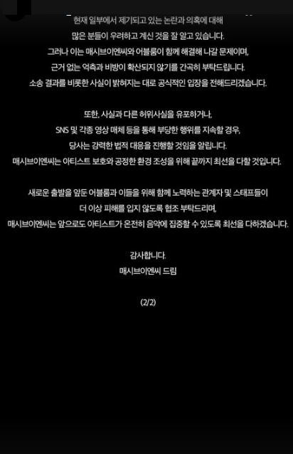 ◆ 매시브이엔씨, 어블룸 공식입장 및 손편지 전문