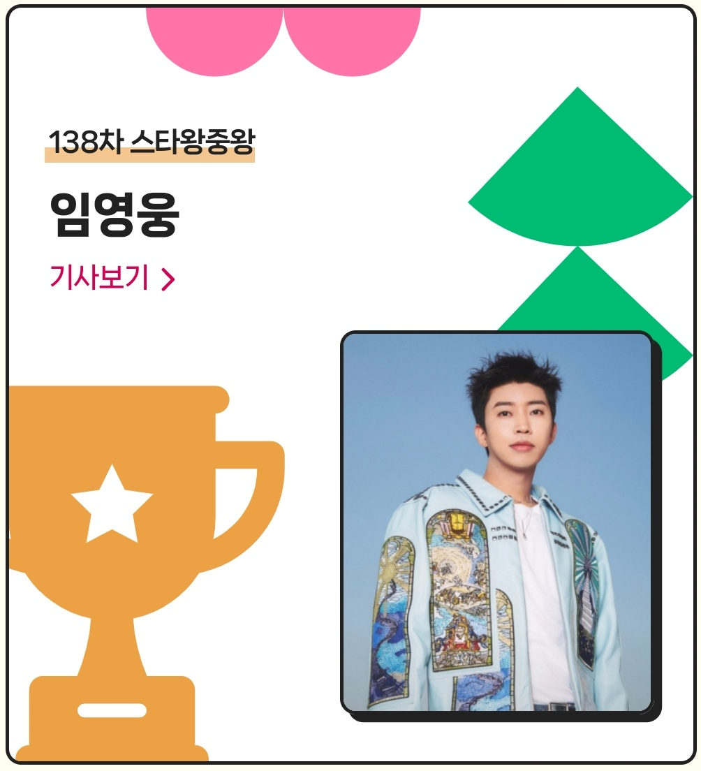 임영웅은 지난 21일 오후 3시 1분부터 28일 오후 3시까지 진행된 2월 4주(138차) 스타왕중왕 랭킹 투표에서 16만 6859표를 얻고 1위에 올랐다.
