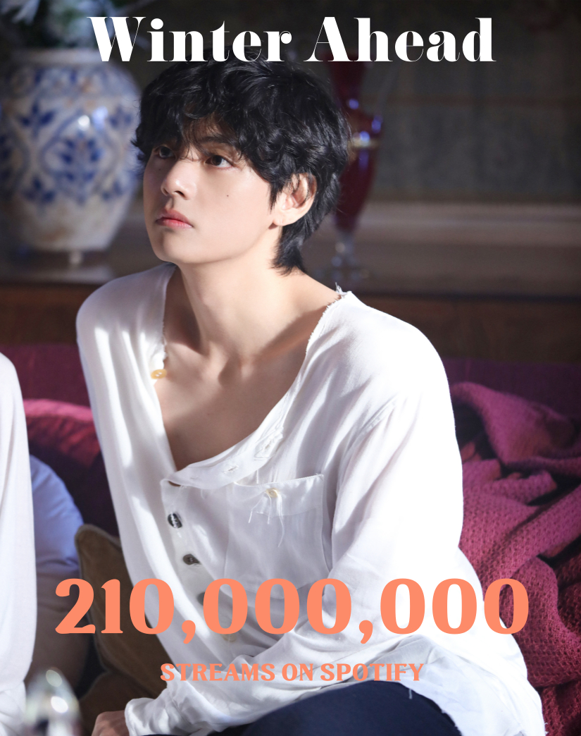 방탄소년단(BTS)의 뷔의 'Winter Ahead(with Park Hyoshin)'가 스포티파이(Spotify)에서 2억 1000만 스트리밍을 돌파하며 인기를 빛냈다.