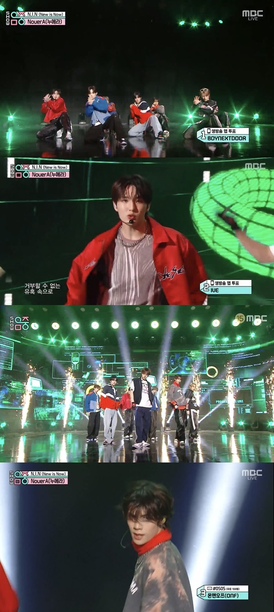 누에라는 1일 오후 방송한 MBC 음악 프로그램 '쇼! 음악중심'에 출연해 첫 미니앨범 'Chapter: New is Now'의 타이틀곡 'N.I.N(New is Now)' 퍼포먼스를 선사했다. 누에라는 빈틈 없이 몰아치는 칼군무와 함께 중독성 넘치는 'N.I.N' 무대를 꾸미며 팬들의 뜨거운 환호를 이끌어냈다.