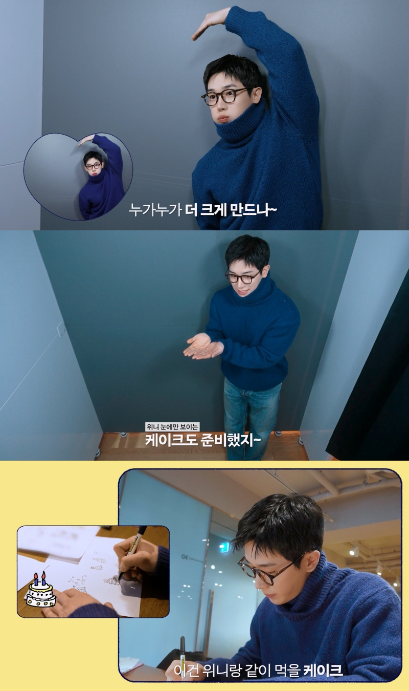 프레임에 삽입될 문구를 손글씨로 작성하는 원호의 모습도 공개됐다. 원호는 '축하해줘서 고마워', '좋아해' 등 애정이 가득 담긴 멘트부터 폭죽과 케이크, 풍선 등 아기자기한 그림까지 막힘없이 술술 그려내며 센스 만점 '금손' 면모를 증명했다.