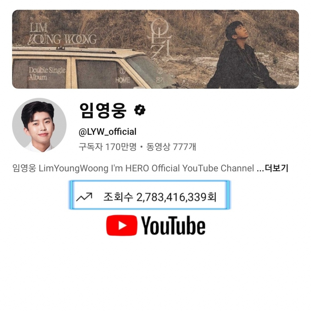 임영웅 공식 유튜브 채널 '임영웅'은 3월 2일 기준 총조회수 27억 8000만 뷰를 넘어섰다.