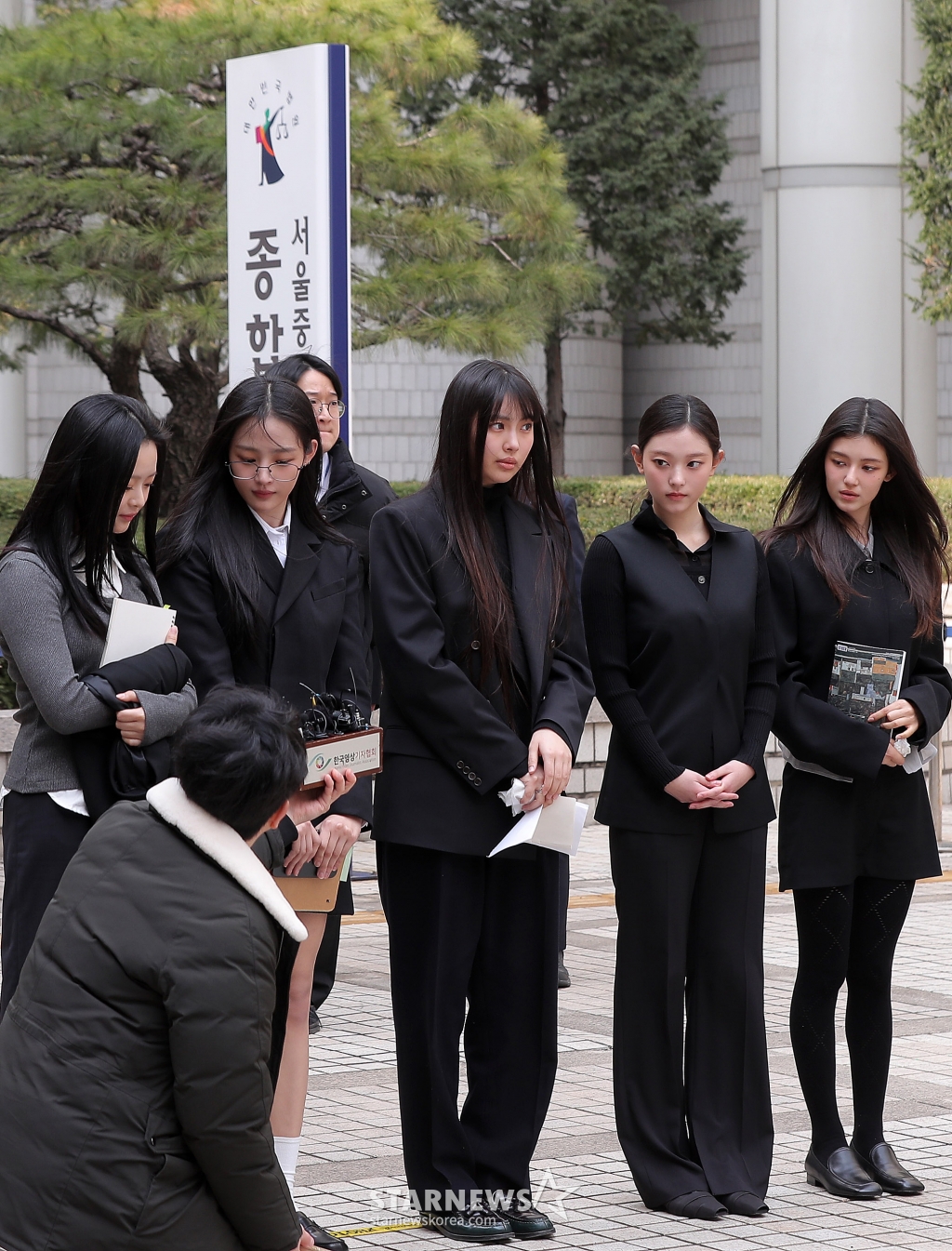 7일 오전 서울중앙지법 제50민사부는 어도어가 뉴진스(민지, 하니, 다니엘, 해린, 혜인) 멤버들을 상대로 제기한 기획사 지위보전 및 광고계약 체결 등 금지 가처분 심문기일을 열었다.