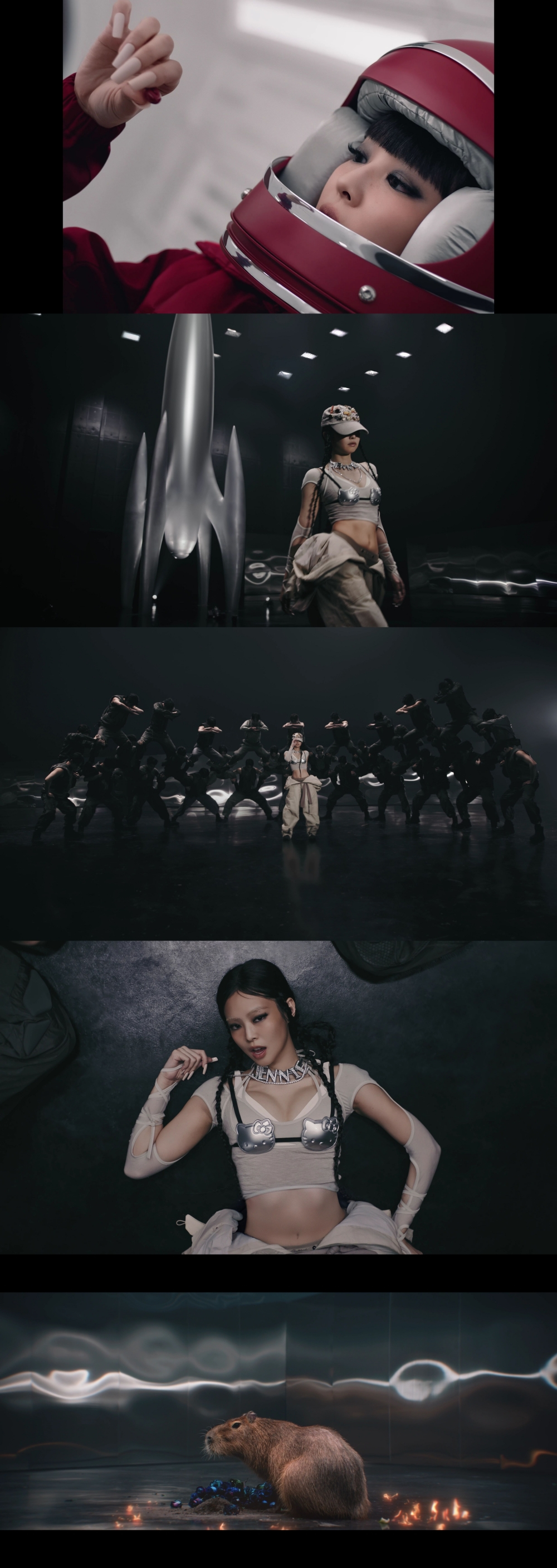 영상 말미에는 처음과 같은 빨간색 우주복을 입은 제니의 몸에 불이 붙었고, 불길이 꺼진 후 제니가 카피바라로 변신해 색다른 재미를 안겼다. 카피바라 옆에는 파란색 장미가 놓여 있어 제니의 새로운 탄생을 알렸다.