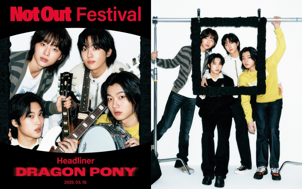 페스티벌 라인업 포스터 형식의 사진 속 드래곤포니는 헤드라이너로 소개되어 있다. 각자의 악기를 손에 쥔 네 멤버는 음악을 향한 열의로 똘똘 뭉친 모습이다.