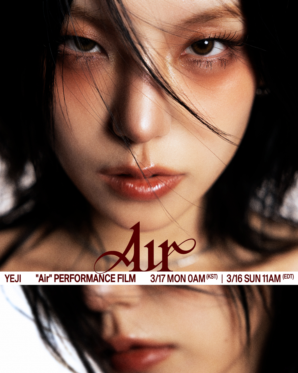 예지의 솔로 데뷔 앨범 'AIR'는 11일 오후 기준 칠레, 말레이시아, 러시아 등 해외 여러 지역 아이튠즈 톱 앨범 차트 1위에 올랐다. 기세를 이어 12일 0시 공식 SNS 채널에 퍼포먼스 필름 포스터를 깜짝 오픈해 팬들의 환호를 모았다. 포스터 속 예지는 강렬한 눈빛으로 독보적인 무브먼트를 예고했다. 춤 그 자체가 된 예지의 모습이 담긴 솔로 데뷔곡 'Air' 퍼포먼스 필름은 오는 17일 0시 공개된다.