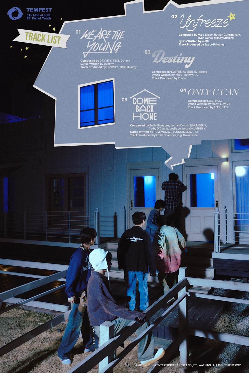 템페스트는 14일 0시 공식 SNS를 통해 여섯 번째 미니앨범 'RE: Full of Youth(리: 풀 오브 유스)'의 트랙리스트 이미지를 공개했다.
