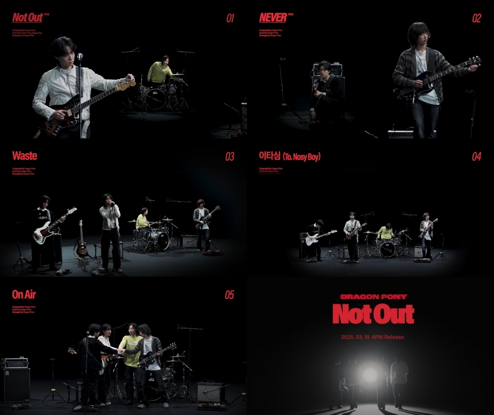 드래곤포니(안태규, 편성현, 권세혁, 고강훈)는 지난 13일 공식 유튜브 채널을 통해 두 번째 EP 'Not Out(낫 아웃)'의 하이라이트 메들리 ''Not Out' Festival - Rehearsal'을 공개했다.